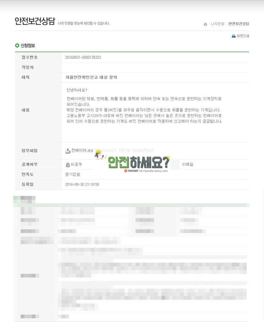 오늘은 그 컨베이어가 어떤 컨베이어인지 안전보건공단에 문의했던 내용을 토대로 같이 보도록 할게요!
