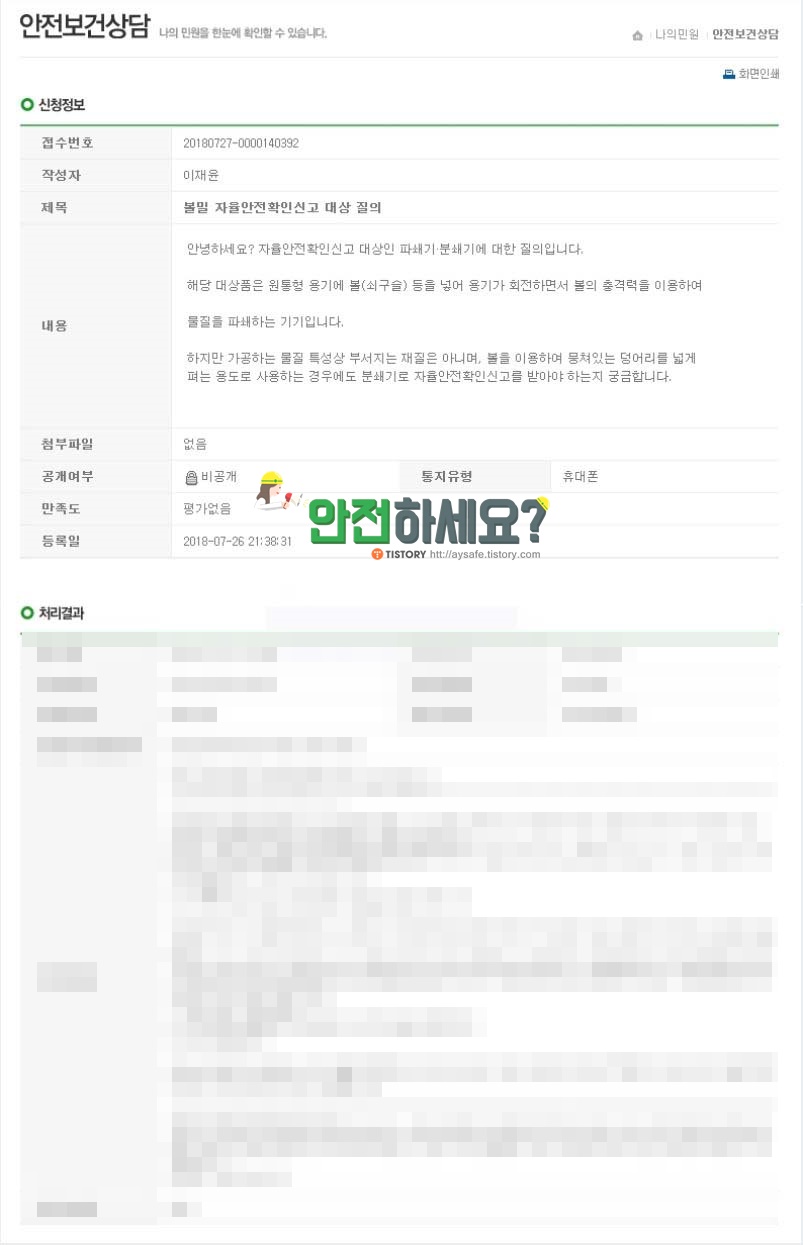 안녕하세요? 자율안전확인신고 대상인 파쇄기·분쇄기에 대한 질의입니다.