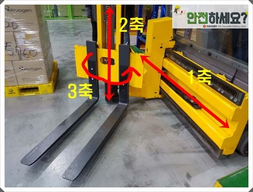 첨부와 같이 지게차 마스트가 3축으로 제어가 가능한 경우, 해당 기계는 산업용로봇으로 보고
