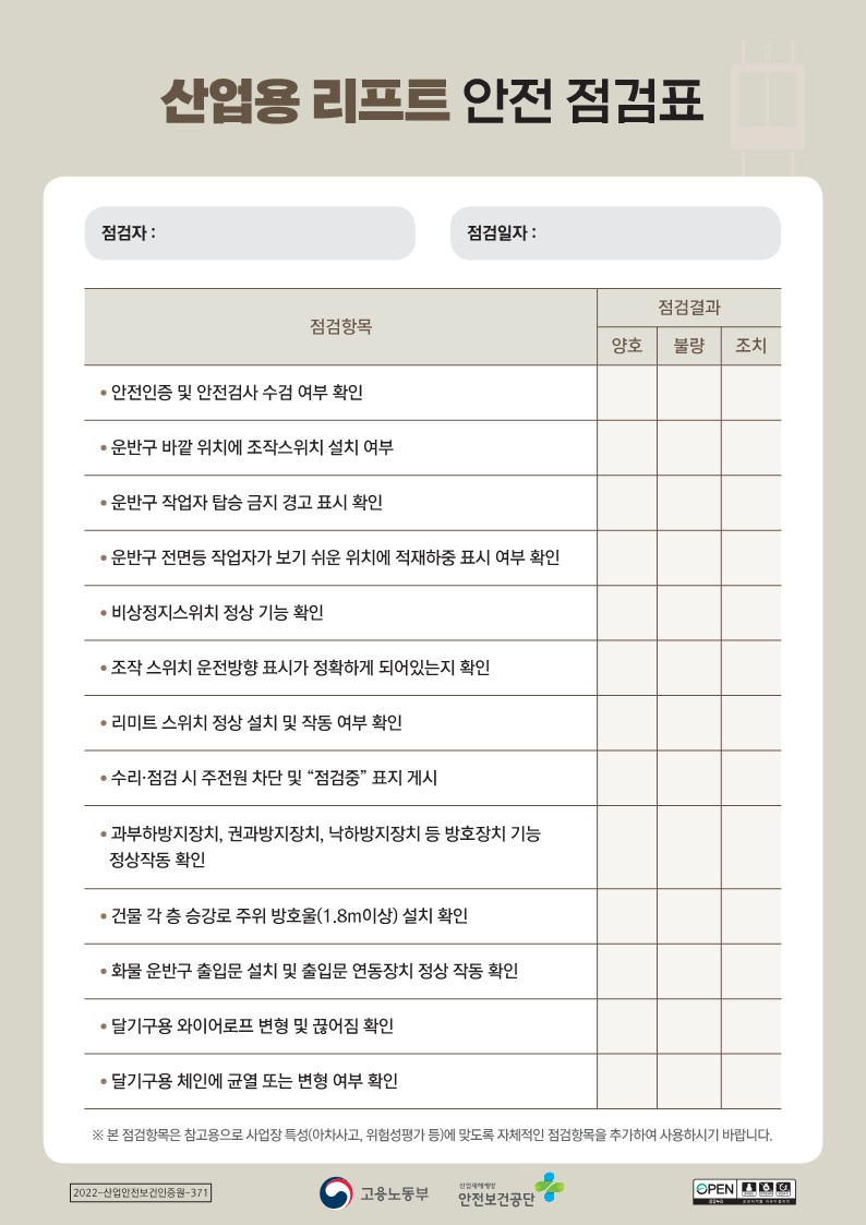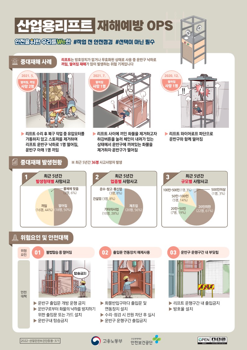 ■ 리프트는 방호장치가 없거나 무효화된 상태로 사용 중 운반구 낙하로 끼임, 떨어짐 재해가 많이 발생하는 위험 기계입니다.