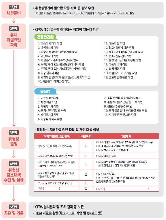음식업과 건물관리업은 자체적으로 위험성평가를 쉽게 하실 수 있도록 안전보건공단에서 자료를 배포하였으니