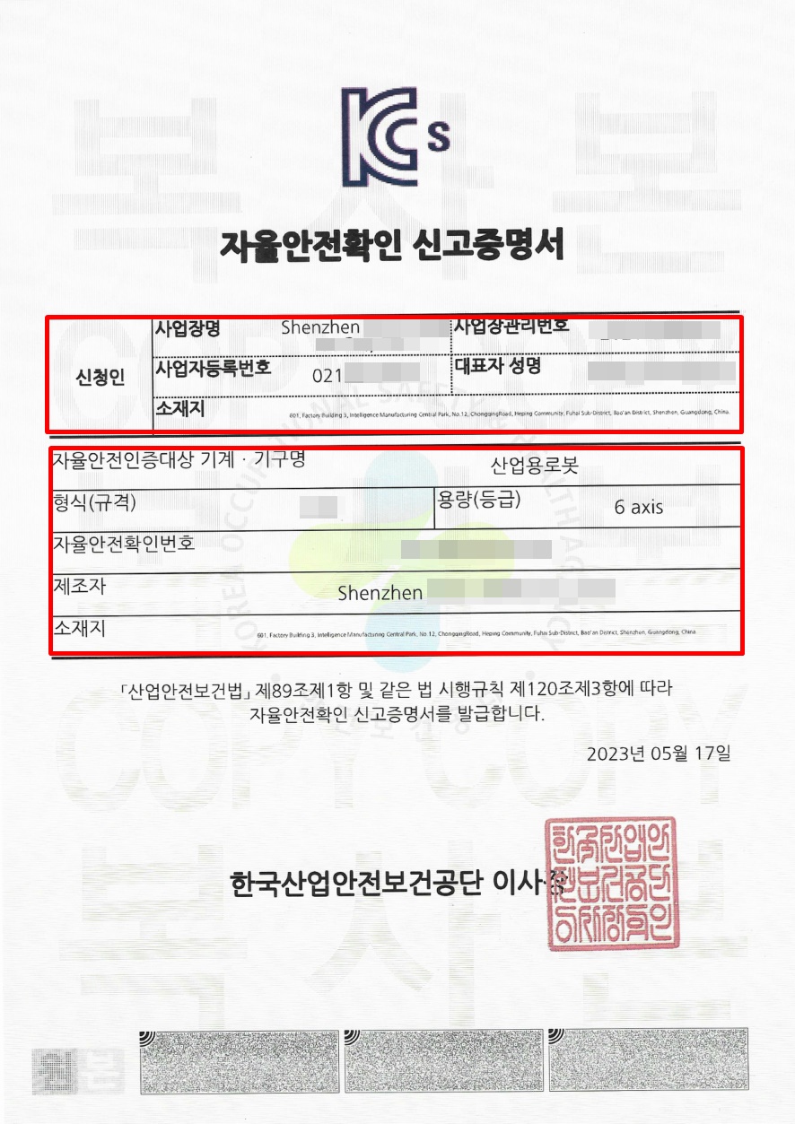 해외 제조사의 경우 영문으로 된 체크리스트를 송부하여 해외 제조사로 부터 답변을 받아서 위험성평가를 작성하거나, 위챗, 화상회의 등을 통해서 위험성 평가서를 작성 할 수 있습니다. 그 밖에 서류들은 단순히 작성하면 되는 서류이므로 샘플 양식을 활용하여 작성하는데 큰 문제는 없습니다.