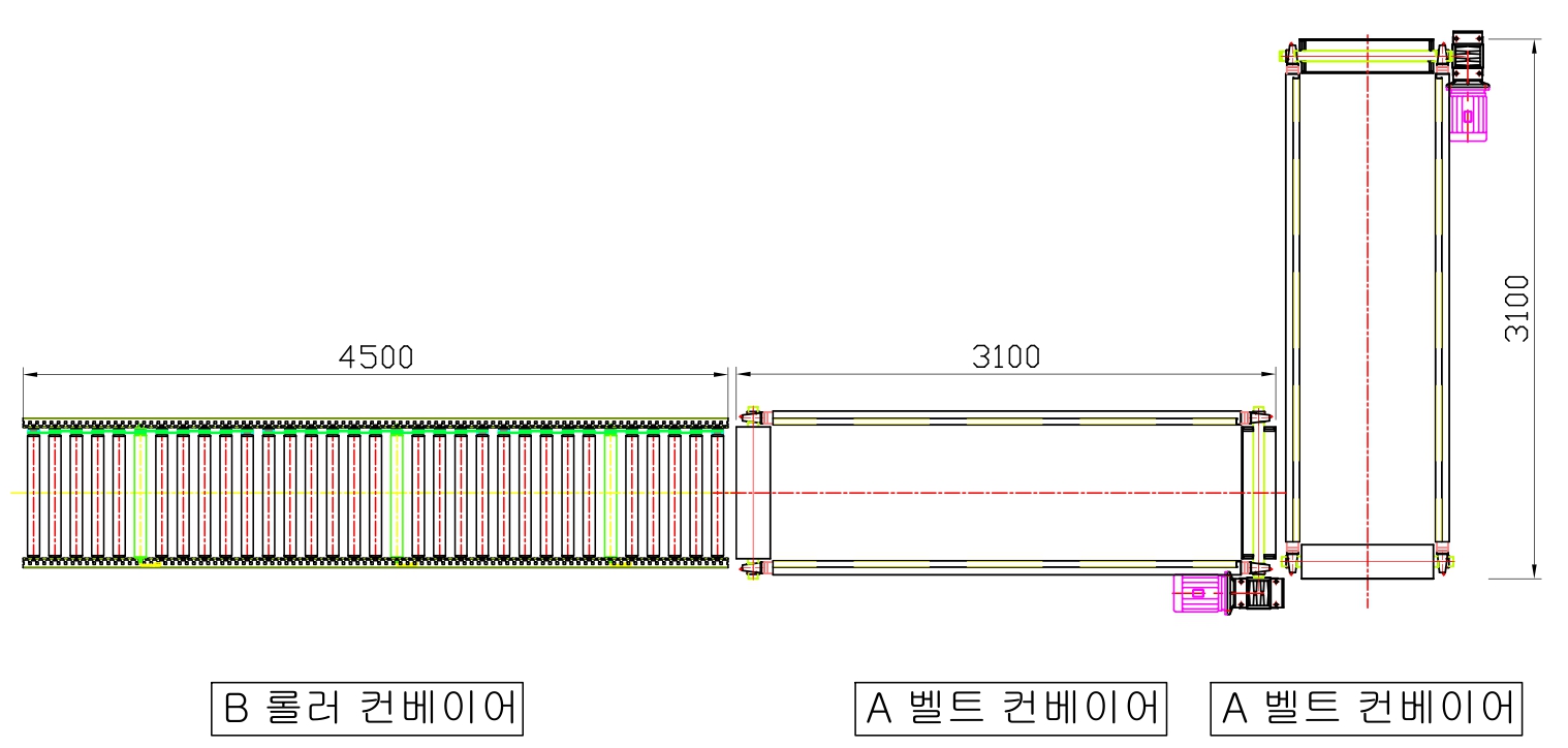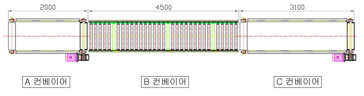| 적용 | · 동일한 종류의 컨베이어를 여러대 제작하는 경우 | · 3미터 이하 컨베이어가 라인에 설치되는 경우 · 다양한 종류의 컨베이어가 설치되는 경우 |