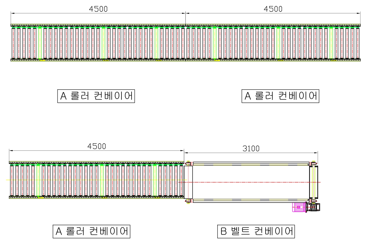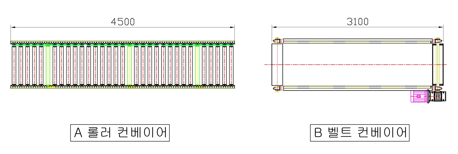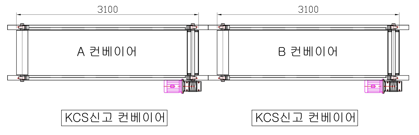 아래 [그림 1]의 예시처럼 동일한 형식의 컨베이어 2대가 있습니다.