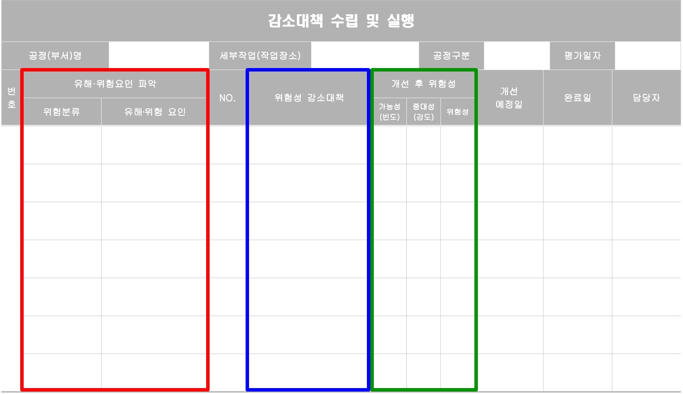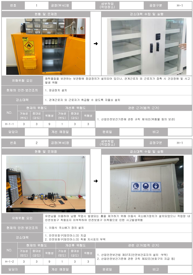 3. 제1호에 따른 유해·위험요인의 위험성 감소대책과 그 실행 계획 및 실행 여부